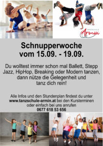 Du wolltest immer schon mal Ballett, Stepp, Jazz, HipHop oder Modern tanzen, dann nütze die Gelegenheit und tanz dich rein!